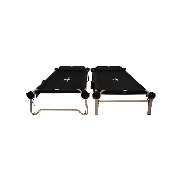 Noch größer und komfortabler: Das Disc-O-Bed 2XL Etagenbett schwarz, ist das Luxus- Outdoor- und Campingbett! Es ist vielseitig nutzbar, als Einzelbett, Etagenbett oder als Sitzbank. Das Gestell besteht aus robustem , pulverbeschichtetem Stahl und die Liegefläche ist aus hochwertigem, strapazierfähigem Polyester 1200D gefertigt und sorgt für einen ergonomisch komfortablen Schlaf. Das Bett ist in nur rund fünf Minuten aufgebaut und kann platzsparend in zwei Tragetaschen verstaut werden. Das Disc-O-Bed 2XL Etagenbett eignet sich auch optimal als Gästebett zu Hause.