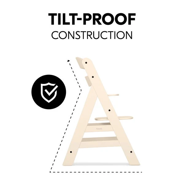 Durch die verstellbare Sitz- und Fußplatte passt sich der Treppenhochstuhl an die Körpergröße deines Kindes an und ermöglicht eine bequeme Sitzposition in jedem Alter. Der Hochstuhl passt auch mit Bügel unter fast jeden Tisch und ist mit einer Maximalbelastung bis 90 kg ein zuverlässiger Begleiter – ein ganzes Leben lang.