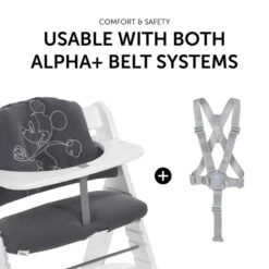 Die Unterseite des Sitzverkleinerers ist mit einer Anti-Rutsch-Beschichtung versehen, um ein Verrutschen während des Spielens zu verhindern. Das Highchair Pad Select ist kompatibel mit jedem hauck Holzhochstuhl und kann mit beiden mitgelieferten Gurtsystemen verwendet werden.