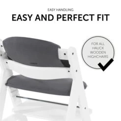 Das Design der Hochstuhlauflage wurde speziell für hauck Holzhochstühle entwickelt. Sie passt perfekt und wird mit Klettverschlüssen einfach und schnell befestigt. Das Highchair Pad ist mit dem separat erhältlichen Alpha Tray Tisch kompatibel, sodass sowohl der Tisch als auch die weich gepolsterte Auflage am Hochstuhl befestigt werden können.