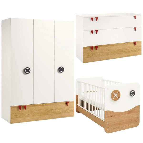 hülsta now! minimo Kinderzimmer in schneeweiß/Natureiche mit 3-türigem Kleiderschrank