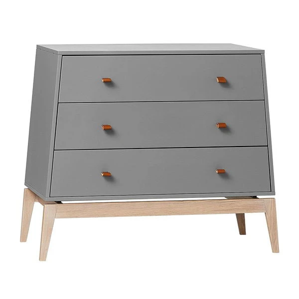 Die Leander Luna Kommode ist mit ihren schrägen Linien ein echter Hingucker im Kinderzimmer. In den drei Schubladen der Luna Kommode finden Kleidung und auch Spielzeug ihren Platz.