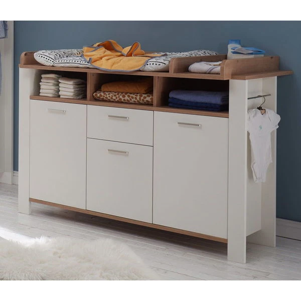 Die Mäusbacher Adele Wickelkommode bietet optimale Qualität zu einem günstigen Preis. Sie ist weiß matt lackiert und mit Asteiche Dekor abgesetzt..