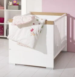 Das Hausbett Lilly lässt sich in der Liegehöhe verstellen, entweder bodentief oder 20 cm hoch und der 30 cm hohe Herausfallschutz ist links oder rechts montierbar. Bei der höheren Liegehöhe können die optionalen Bettschubladen oder das Gästebett untergeschoben werden. Für eine bessere Kopffreiheit der Eltern kann der vordere Dachbalken auch weggelassen werden, ohne dass die Stabilität des Bettes beeinträchtigt ist.