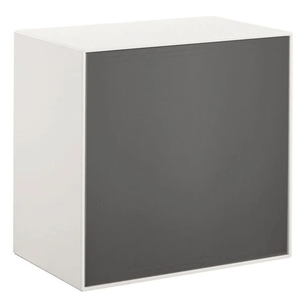 Die now! by hülsta easy Hänge-Designbox verfügt über 1 Tür hinter der sich zwei Fächer befinden. Türanschlag der Drehtür links oder rechts wählbar. Lieferung inkl. Hängebeschlag. Korpus grundsätzlich in Lack-reinweiß und Tür mit Akzente in Lack-hellgrau.