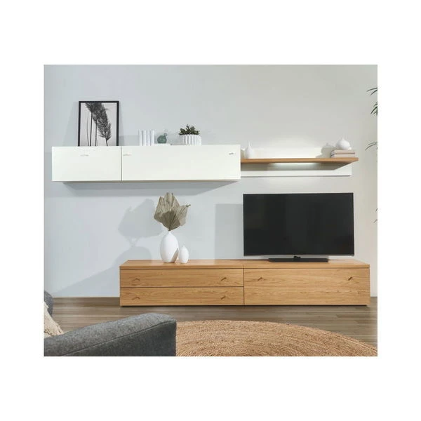 Die now! time by hülsta Kombination 7 in Natureiche/Lack-weiß ist eine Kombination aus Lowboard, Hängeelementen und einem Regalbrett.