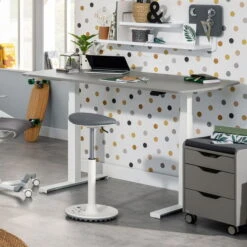 Der Paidi e-lion 1 Schreibtisch fördert das regelmäßige Verändern der Sitzposition um mal niedriger und mal in hoher Position zu lernen und so die Muskulatur zu trainieren. So wird zusätzlich die Konzentration positiv zu beeinflussen.