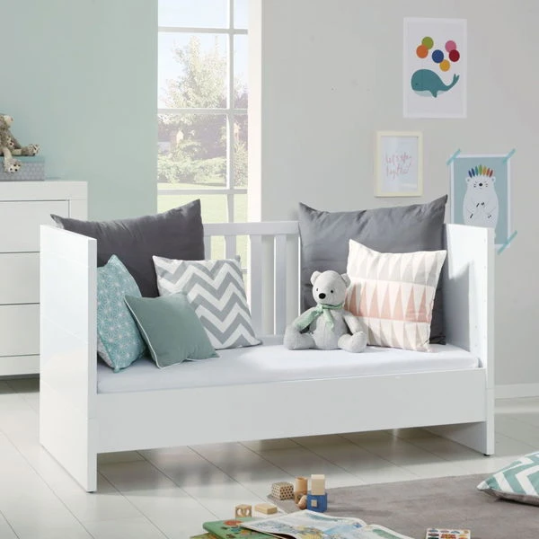 Mit den zusätzlich erhältlichen Umbauseiten lässt sich das Bett zu gegebener Zeit schnell und einfach in ein Juniorbett (2 Umbauseiten) oder ein Bettsofa (1 Umbauseite, 1 Gitterseite) umbauen. So kann das Bett ihnen und ihrem Kind lange Freude bereiten.