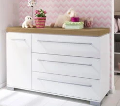 Die Paidi Kira Kommode ist mit 3 Schubkästen und einer Tür ausgestattet. Die Deckplatte der Paidi Kira Kommode ist 60 mm stark.