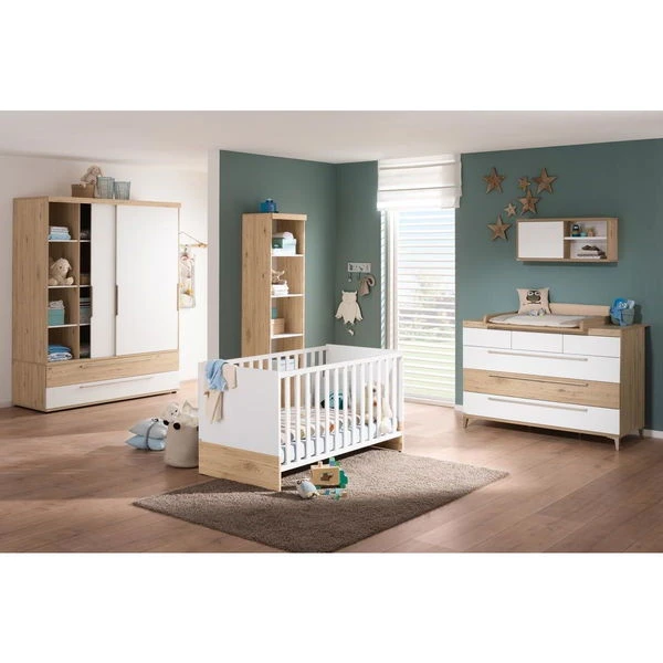 Das Paidi Remo Kinderzimmer kombiniert trendiges Kreideweiß mit einem warmen Eiche-Bordeaux-Dekor und schafft in jedem Kinderzimmer eine gemütliche Atmosphäre . Die breiten Griffe und formschönen Füße unterstreichen die moderne und dennoch zeitlose Optik des Paidi Remo Kinderzimmers.