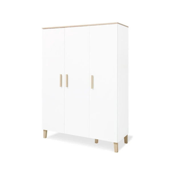 Mit seinem modernen Design lässt der Pinolino Lumi Kleiderschrank jeden Raum erstrahlen. Weiße Fronten und massive Möbelfüße harmonieren perfekt miteinander und hinter den 3 Türen ist jede Menge Platz.