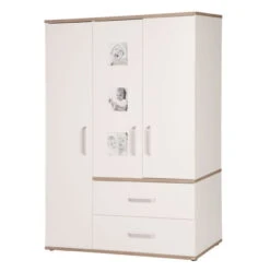 Der Kleiderschrank von Roba ist mit einer großen und zwei kleineren Türen und zwei Schubkästen ausgestattet. Die integrierten Bilderrahmen in der mittleren Tür können mit persönlichen Fotos bestückt werden und machen den Kleiderschrank so zu einem Unikat.