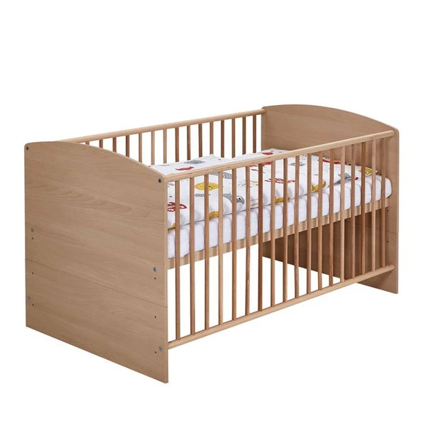 Das Kombikinderbett Classic Buche ist mit Rundhomgittern in Buche massiv ausgestattet. Der Lattenrost ist dreifach höhenverstellbar und somit gut anpassbar. Drei Schlupfstäbe erleichtern dem kleinen Bewohner zu gegebener Zeit den Ein- und Ausstieg.