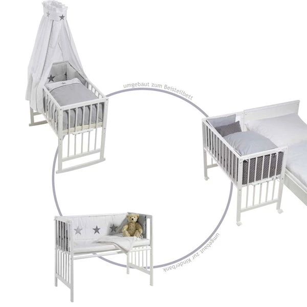 - 5-fach verwendbar als Wiege mit Kufen, Stubenwagen, Gitterbett, Kinderbank und Beistellbett