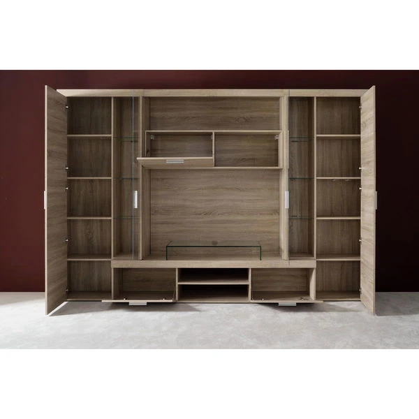 Die trendteam Mondeo Anbauwand ist eine zeitlos gestaltete Kombination für ihren Wohnbereich. Mit geradem, modernem Design und warmen Farben wird die Anbauwand zum Blickfang, der gleichzeitig viel Platz bietet.