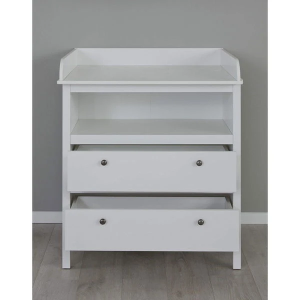 Die Wickelkommode verfügt über 2 Schubkästen und 1 offenes Fach, diese bieten viel Stauraum für alle Hygieneartikel.