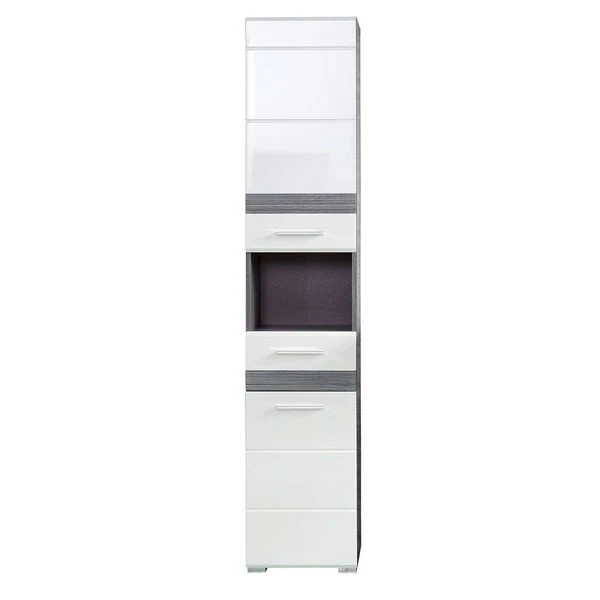 Trendteam Set-One Bad Hochschrank Weiß / Rauchsilber