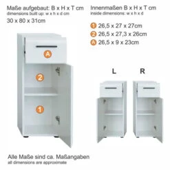 - Maße B/H/T: 30 / 77 / 23 cm